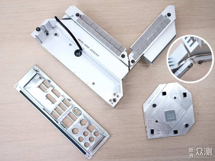 供电散热为2部分铝块,两者之间用热管连接,以均摊热量,另外采用了VRM设计,能兼顾到mosfet和电感的散热,微星在宣传上还强调所使用软硅脂垫的导热系数达到了7W/mk。此外PCH散热器也很厚实了,一体式I/O背板内侧还有类似海绵材质来提供缓冲。