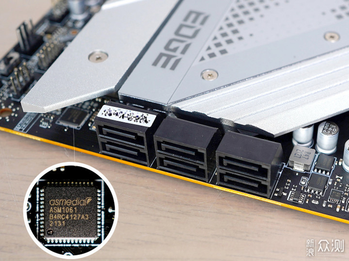 6个SATA接口,但由于通道数被占用过多,有2个非原生,由第三方的ASM1061芯片支持,这样也就不用和其它接口共享通道了。