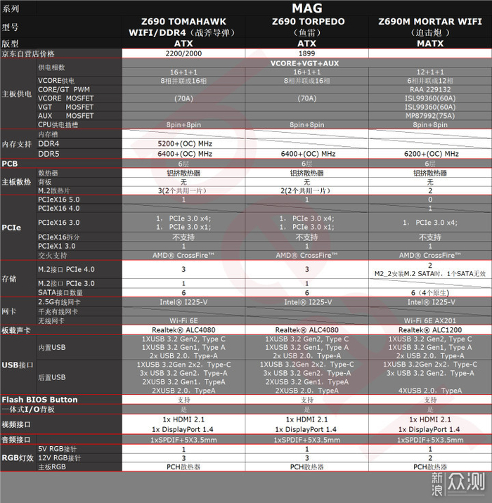 MAG定位中端,因为TOMAHAWK 有DDR4和DDR5两个版本,所以一共有4款。