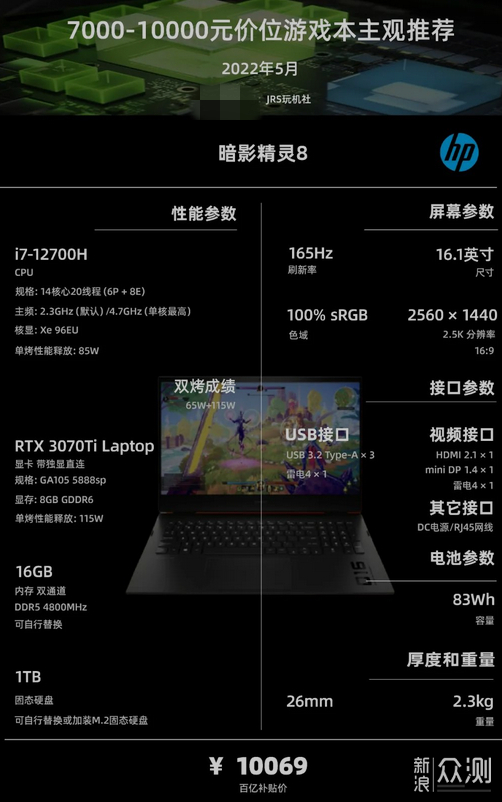 暗影精灵8 Plus毫无疑问是“平民战神”,散热表现达到了目前顶级游戏本的水平,但是RTX3080Ti版本,价格却仅仅相当于其它厂商RTX3070Ti机型的价格,性价比很突出。不过,它的外观略显低调,适配器体积巨大,如果需要炫酷的外观,它恐怕不适合你。