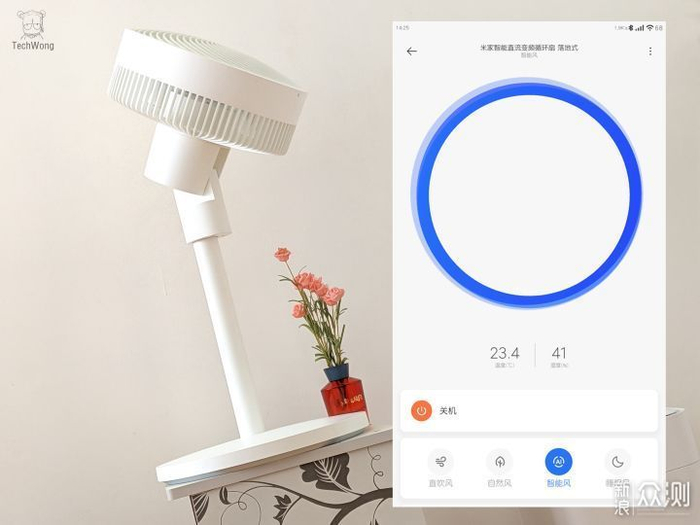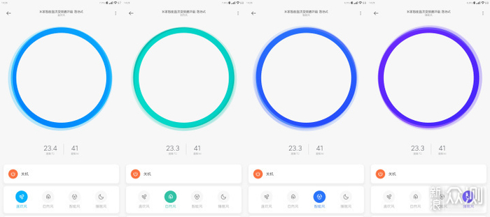 在米家APP里,我们除了能看到米家智能直流变频循环扇 落地式支持4种模式的风(直吹风、自然风、智能风、睡眠风),每种风对应的风速,风量和调节方向等多项设置,还能在操作主页面,看到当前环境下实时监测到的温度和湿度两项数据。