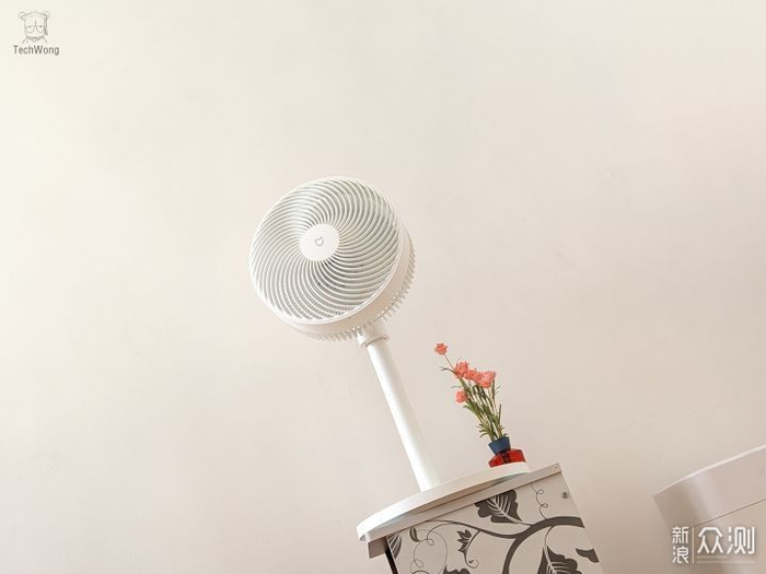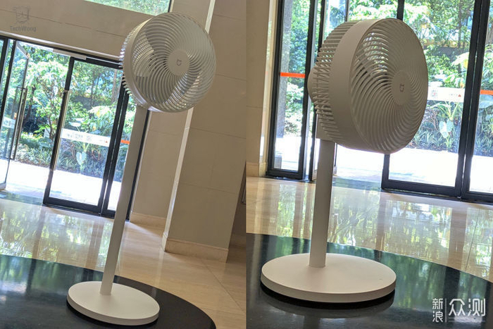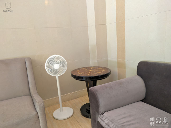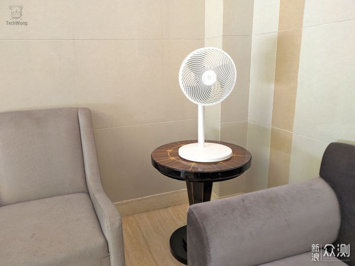 米家智能直流变频循环扇 落地式组装完成的效果图如下,可以看出和我的家居环境是非常搭的。整机还是小巧养眼,也不占地,比家里的沙发和茶几稍微高超那么一小节。