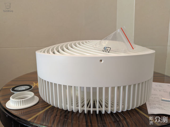 米家智能直流变频循环扇 落地式的电机和部分风扇组件组装完成的效果如下图,除了前风罩尚未拼装。可别看他扇叶没普通的风扇大,但是,它的吸风压力(10 Pa)是普通落地扇的2倍,打风压力(45 Pa)是普通落地扇的2.6倍,这也是它能制造更强风压,带动全屋空气的奥妙所在。