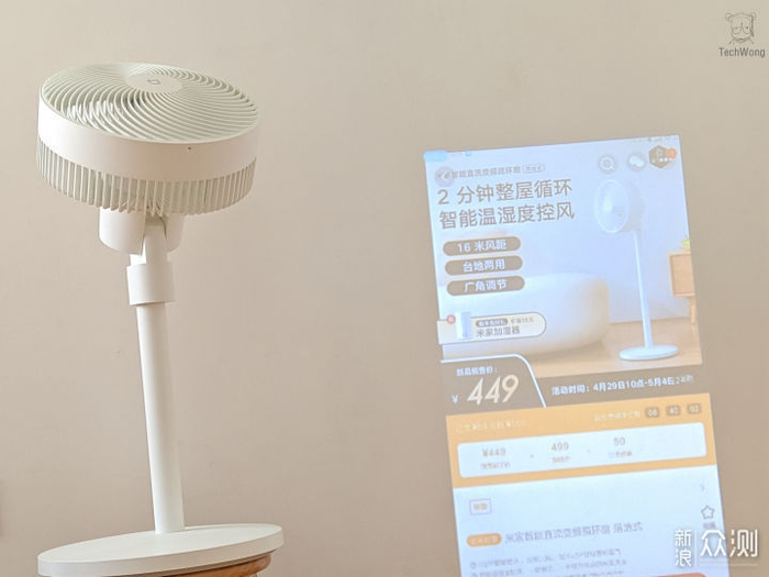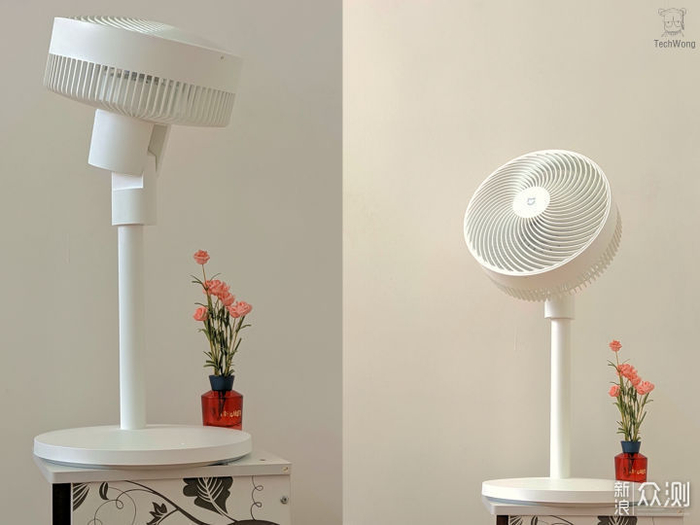 今天我上手的这款风扇主要是为了空气循环和通风换气设计的,通体采用纯白的配色,角落随意一摆就很吸引眼球,支持台地两用,支持左右和上下循环摇头(水平150° 垂直90°全方位自动摆头),更有温湿度感应控风。