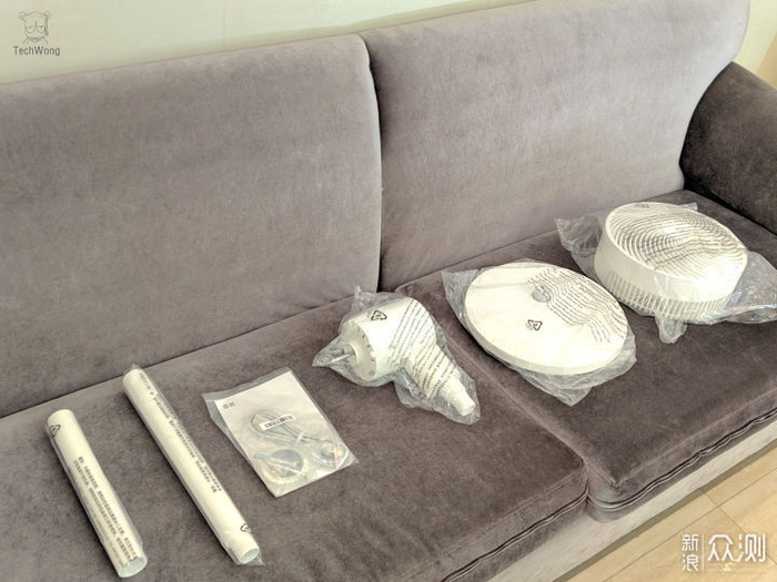 打开盒子后取出所有物品后可以看到产品的配件虽然不多,但是很齐全,同时,保护措施还是非常到位的,因为箱子整体都有纸壳分成分区域包裹,可以最大限度的避免运输过程中损坏。