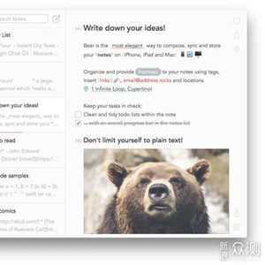编辑切换为居中添加图片注释,不超过 140 字(可选)Bear 是一个漂亮,灵活的Markdown 的写作工具。它一样只支持苹果家的全平台。它一出现就惊艳四方,就被App Store 被推荐,也显示出它的好用。对其他Mac 上的Markdown 编辑器只能买才能用,但是Bear 是你可以免费使用基本功能,高级功能需要购买专业版。而它的基本版也基本够用,你可以随时隐藏侧边栏,快捷键提示,所见即所得,将使用到语法的地方在左边栏显示。支持各种格式的导出,还有图片格式。专业版可以自定义标签,随意更换主题