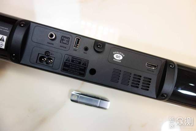 在JBL CINEMA KTV350条形主机的背后还有USB接口,同样通过调节信号源将其设置到USB,就可以播放U盘中的内容。