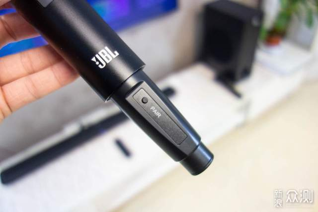 因此通过指示灯即可判断是否连接成功。如果想要手动配对也可以通过低音炮背部的PAIR配对按钮按照说明书的指导进行配对。麦克风的PAIR配对按钮拧开底部的保护壳即可看到。