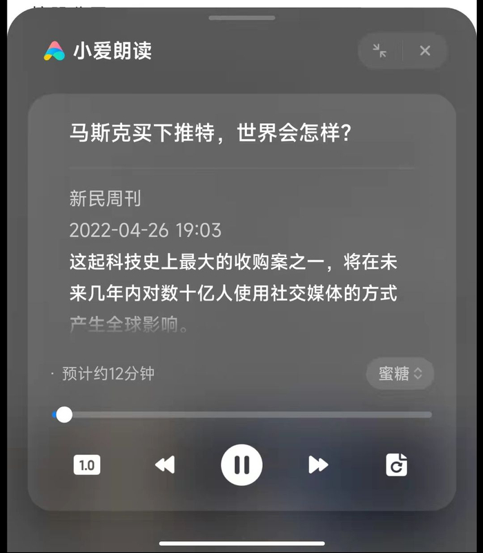 小米表示,在通勤、锻炼、做家务等看屏幕不方便时,“小爱朗读功能”可以帮助用户将屏幕上的文字信息转换为音频进行播放,从而更好的获取信息。