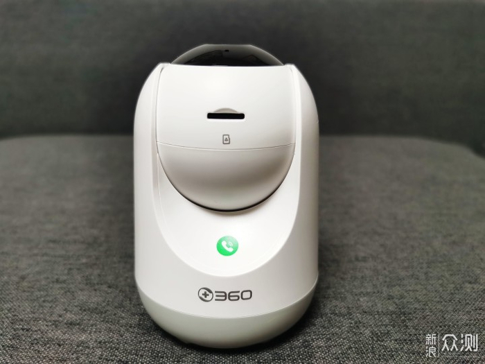 黑色的摄像头部分像极了大眼睛,大眼睛的上下两侧分别设计了状态指示灯和麦克风,机身正面绿色的小电话就是“一键呼叫”按钮。