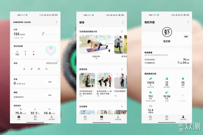 作为一款智能手表,我们还关注它的健康监护功能,毕竟标配了心率传感器,而且 Galaxy Watch4 还配备了手表专用的 BioActive 身体活力传感器, 是全球首款支持身体成分检测的智能手表。通过详细的数据采集、统计能帮助使用者更好的了解自己的身体,从而规划健康的生活。