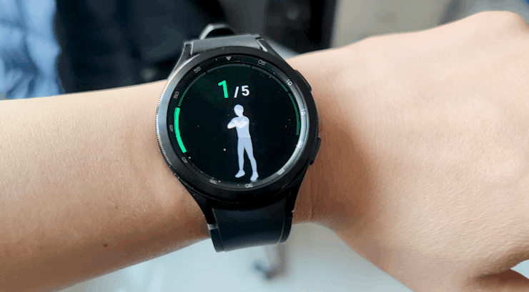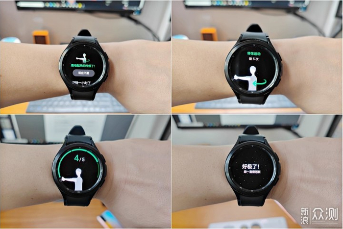 对于办公室久坐一族来说,简单的久坐提醒很可能就直接忽略了,Galaxy Watch4 的提醒就显得趣味且人性化,互动式的语言提醒,简单的拉伸动作,体感式的游戏反馈,都让人想去完成它。