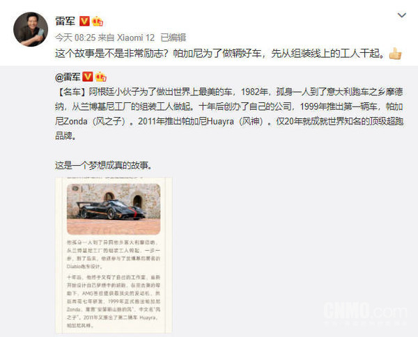 雷军分享帕加尼创立故事 年轻人的第一台超跑要来了?