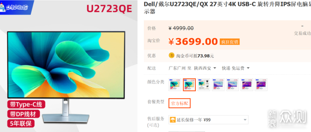 专业设计用途,建议选戴尔U2723QE:淘宝目前3699 5年保修(京东是默认3年保修)