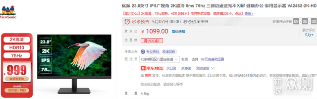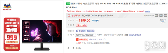 适合对尺寸大小有要求,预算在千元以内,一线显示器品牌,性价比27英寸 1080P 144Hz IPS面板,到手价959元(返20E卡+用Plus会有-20元券)