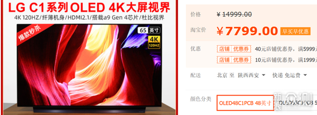 有这个预算我选7799的48英寸 LG OLED电视机,目前我个人不太推荐,
