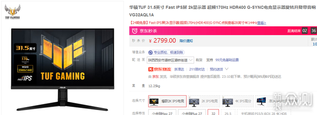 LG这款满减到手是2999元,如果预算不是太紧张的话,建议在LG和TUF这两款31.5英寸中选一个。