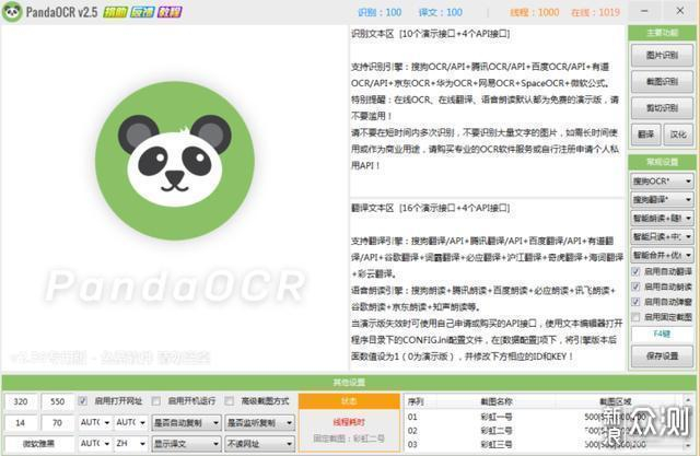 PandaOCR支持多种识别引擎、公式识别、表格识别、多种朗读引擎、快捷键和屏幕边角触发截图识别功能、智能合并修正文本、监听图像和文本复制操作、右侧小弹窗预览文本信息,快速查看识别/翻译内容。