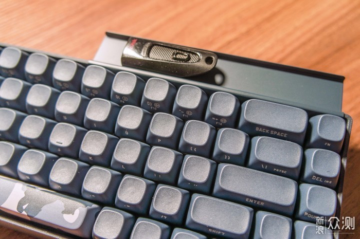 另外洛斐的机械键盘还有一个很意思的小装置,就是配件盒里面的铁片,它可以磁吸在键盘最上面的卡槽内,对于PO主来说,它可以用来当做放U盘的托盘。