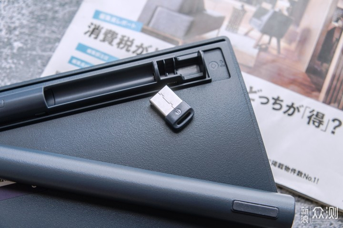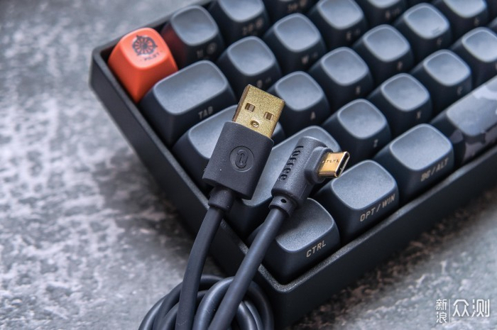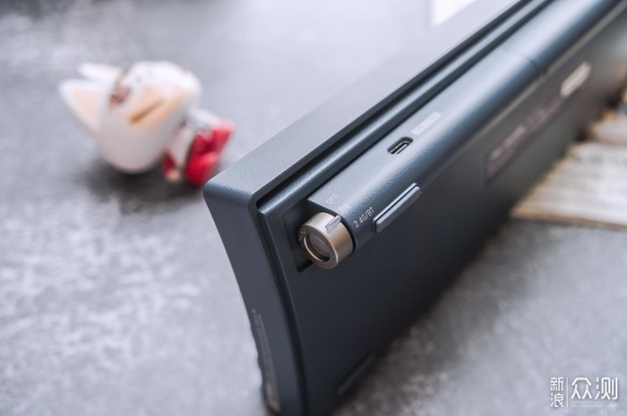 旋转开关旁边是Type-C接口,移动键盘时不用担心Type-C线材会脱落。