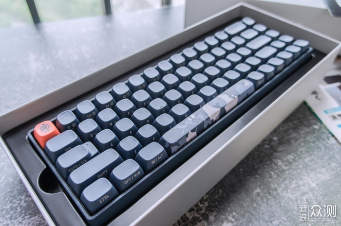 在使用前,可以先从侧面看一下这款产品的结构,和其他机械键盘不同,这款小翘暗夜蓝没有脚撑设计,而是根据人体工学让键盘平放时以9°的角度翘起,从而让用户手腕更放松。