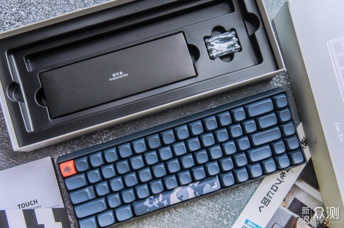 拆开键盘的薄膜袋就可以看到这款小翘68三模机械键盘的全貌了。