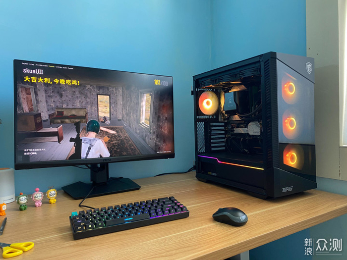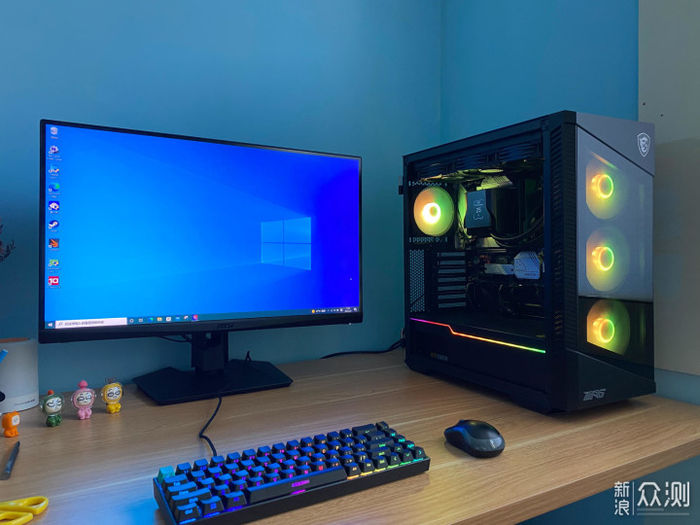 顺利启动了,显示器是微星的2K电竞屏MAG274QRF-QD,IPS屏幕,2K超高清精细画面,165Hz高刷新率,同时具有1ms的GTG响应速度,确保游戏时具有清晰顺畅的画面。同时支持NVIDIA G-SYNC,有效的保证了游戏时画面不撕裂,实现良好的游戏体验。它的色彩丰富,采用了原彩量子点技术,实测其色域可以轻松覆盖100%sRGB、100%AdobeRGB和97%的P3色域。另外色准表现同样非常优秀,平均的Delta E才0.82,色准表现非常优秀。