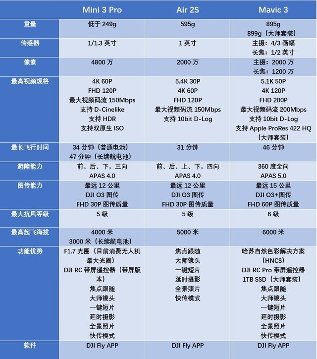 大疆Mini 3 Pro、Air 2S、Mavic 3无人机怎么选