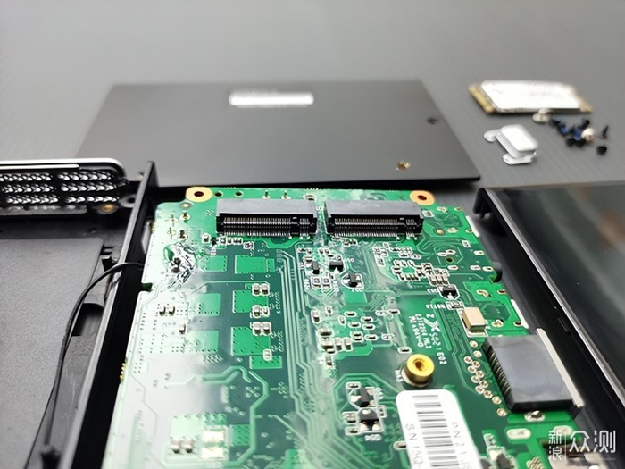 机身内部有两个m.2的接口,可以安装一个m2.2280规格的NVMe固态硬盘和一个m2.2242规格的SATA固态硬盘。16GBDDR4 2933MHz内存是被焊在主板上的,无法更换。同时,它甚至还内置了主动散热的风扇,保证长时间运行中系统的稳定性。