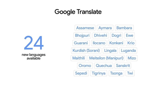 今天,我很激动地宣布,我们为 Google翻译新增了 24 种新语言,包括首批增加的美洲原住民语言。共计有 3 亿多人在使用这 24 种语言,这样的突破正在推动我们获取知识和使用电脑的方式发生根本性转变。