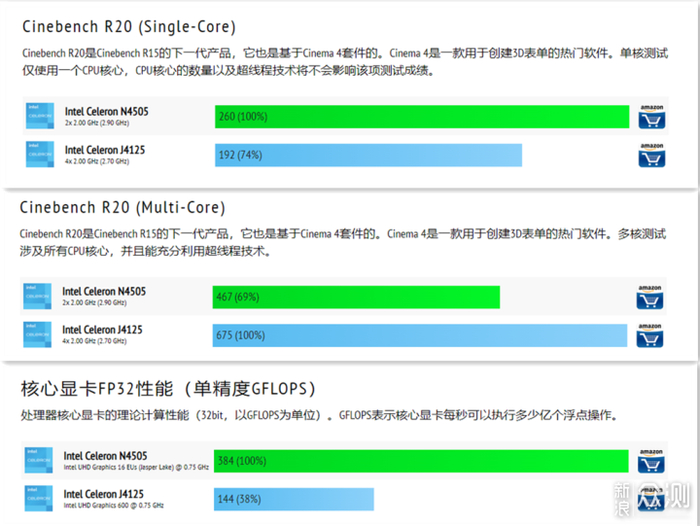 ▼硬件配置方面TS-462C采用了N4505处理器,核显为16EUS,参考CPU-MONKEY提供的数据,N4505相较于上代主流旗舰机型处理器J4125单核心性能提升30%左右,多核心受限于核心数较少,落后30%,但是GPU性能将近是J4125的3倍,这不用来整影视不太可惜了。