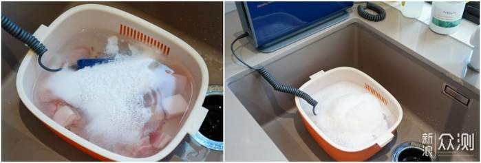 ▲无线款8W功率在净化肉类时就显得力不从心了,生成的白色泡沫比较少。