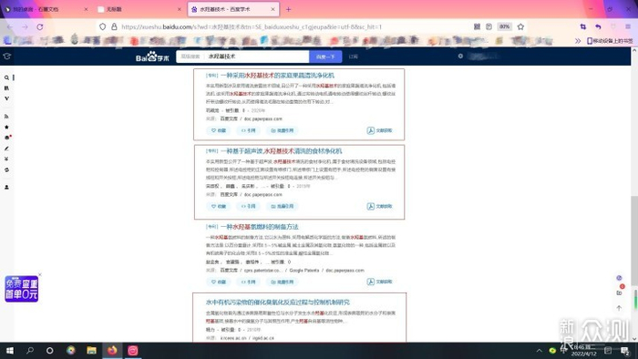 ▲在百度学术中搜索水羟基技术,有几百条相关专利、论文。尤其在处理水中有机污染物领域也有涉及。