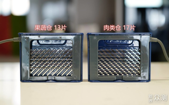 ▲摩飞净化仓上的钛板数量和大宇不同,它采用的是果蔬素仓13片钛板 35W、肉类仓17片钛板 45W设计,总功率80W。看得出来,对于荤素不同食材清洗,摩飞做了功率细分。