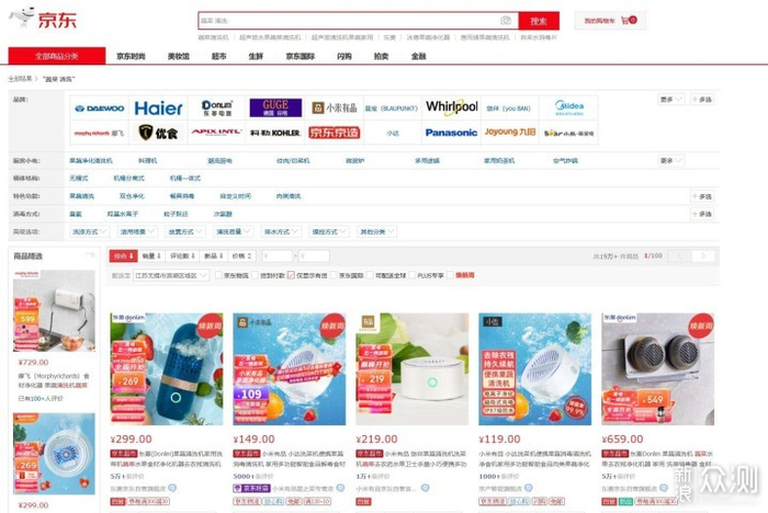 ▲我试着在京东上输入:蔬菜 清洗,搜索结果会跳出果蔬净化清洗机这类产品,它们的关键技术均为:羟基水离子净化技术,有些畅销品的评价居然达到了5万+。