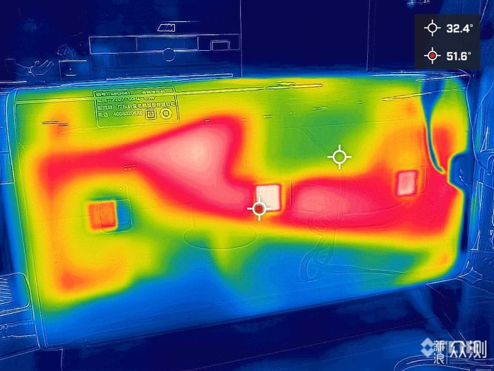 ▲用完后可激活30分钟烘干程序,从热成像仪能清楚看到热风从中间向两侧扩散。