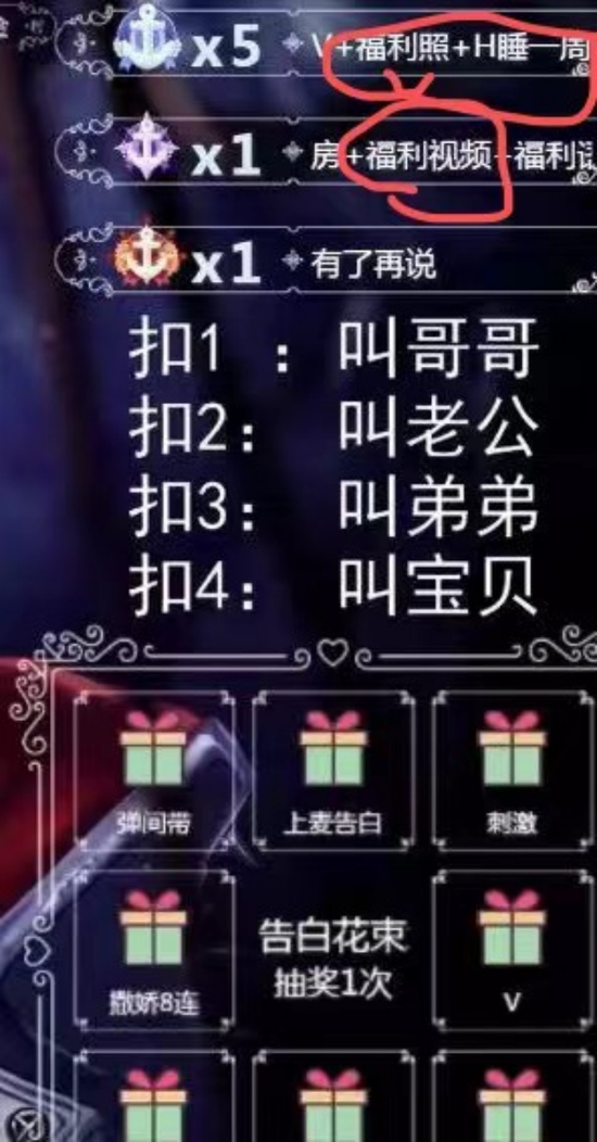 价目表中的所有色情服务,均以B站礼物标价,并用B站直播间虚拟礼物完成交易。
