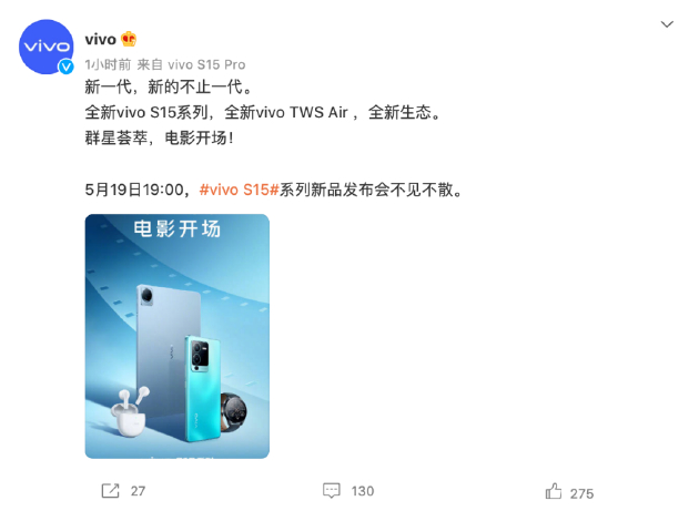 vivo S15系列5月19日发布:多款产品组团亮相“不负3000万用户期待”