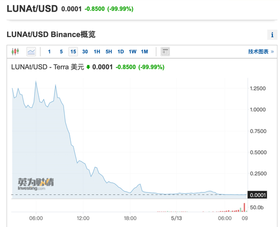一度被币圈玩家称为“币圈茅台”的LUNA币遭到血洗,狂泻99.99%!据coingecko,LUNA币曾在4月5日达到119.5美元高点,也达到了其最高市值410亿美元(约合人民币2786亿元)。不过,近段时间LUNA币一直下跌,截至发稿其最新价已不足1美分,仅0.0001美元。