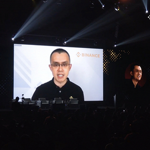 图片为Blackchain Week直播截图,屏幕上的为赵长鹏