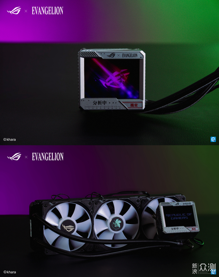 作为ROG×EVA全家桶战力升级的关键,ROG RYUJIN Ⅱ 360 ARGB一体式水冷散热器 新 世纪福音战士 | 限量版在冷头独特的3.5英寸LCD显示屏上,添加了EVA专属的“分析中”、“解密”字样,细节处理非常到位;显示屏UI也经过了专属定制化设计,同步率波形动画+系统负载信息实时展示。