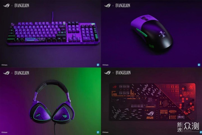除了整机外,在外设方面,ROG为玩家带来了鼠标、键盘、耳机、鼠标垫四款EVA联名产品: