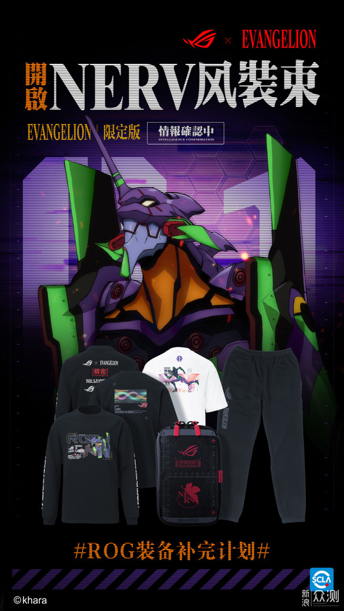 为带给玩家更完备的装备,此次ROG与EVA的联名产品,还覆盖到了周边服饰。白色T恤将初号机、状态标语与ROG元素融合呈现;黑色T恤则使用同步率与ROG品牌图文,寓意二者的完美结合;长袖运动衫展现了栩栩如生的初号机形象,背部加入了联名主题元素;运动裤将同步率经典元素融入其中,舒适贴身;除了服饰外,ROG此次更是打造了犹如真实NERV员工所使用的斜挎包配给品,以刻度与对位点等细节带出精密与科技感,整套周边产品让人心动不已!