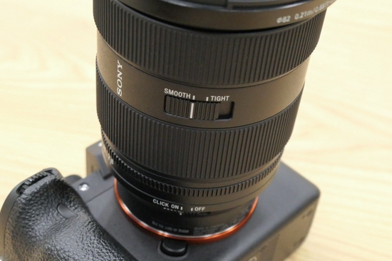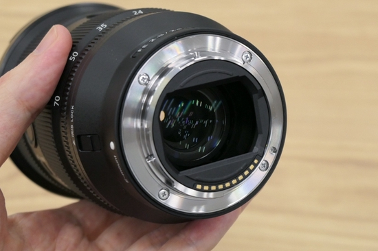 镜筒改为向卡口侧变细的造型,外观感觉像是“FE 24-105mm F4 G OSS”。 其结果是,确保了镜筒与相机机身手柄之间的间隙,提高了握持感。