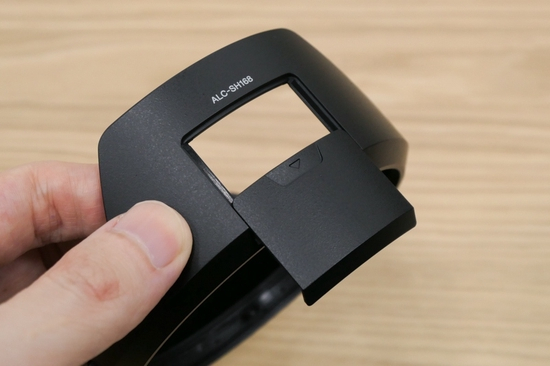 附带的遮光罩上的滤镜窗也是一个新设计。 允许你在装上遮光罩的同时操作镜头滤镜(例如 C-PL 或可变 ND)的旋转框架的机构。