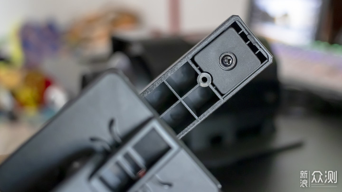 底座主体采用的是工程塑料材质,固定装置采用的是金属材质,可以更好地保证安装的稳定性,底座正面用来安装方向盘盘面,背面则是连接挡杆和脚踏板的插口,三个设备的连接非常方便。