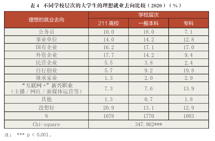 (二)211高校生青睐外企,一般本科偏好公务员,专科生最爱创业
