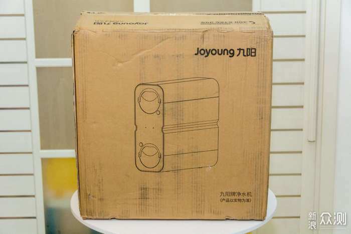连拖带拽地搬回到家啦,整个包装还是有点大的,也是比较重,包裹的还是挺严实的。外包装上面印有九阳大双水净水机R589的产品图和文字,已经迫不及待的要打开箱子看看了。