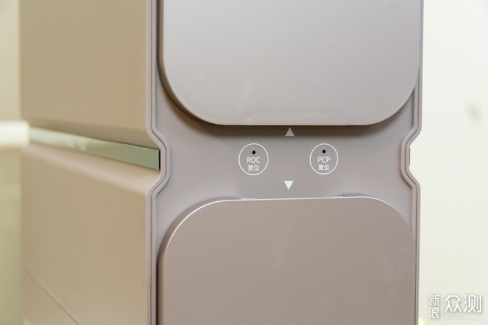 上下的两个盖的可以打开的,用于放置滤芯不同的滤芯,上面是ROC直饮水、下面是PCP洗用水,用过净水机的都知道,每次换完滤芯都是需要复位一次的。