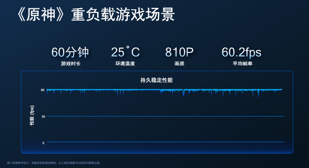 本次高通也公布了一些游戏测试数据。据介绍,在环境温度25度、最高画质810p的设置下,持续测试《原神》1小时,骁龙8+的帧率波动不大,平均帧率可达到60.2帧,并且骁龙8+相比骁龙8平均功耗可降低30%。